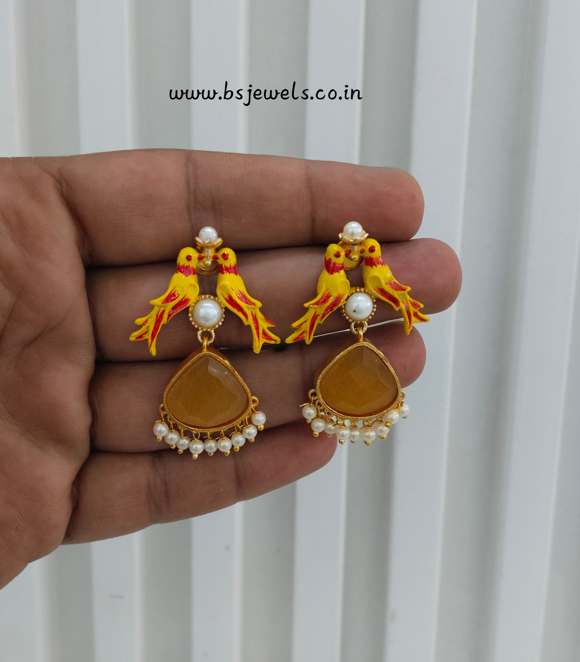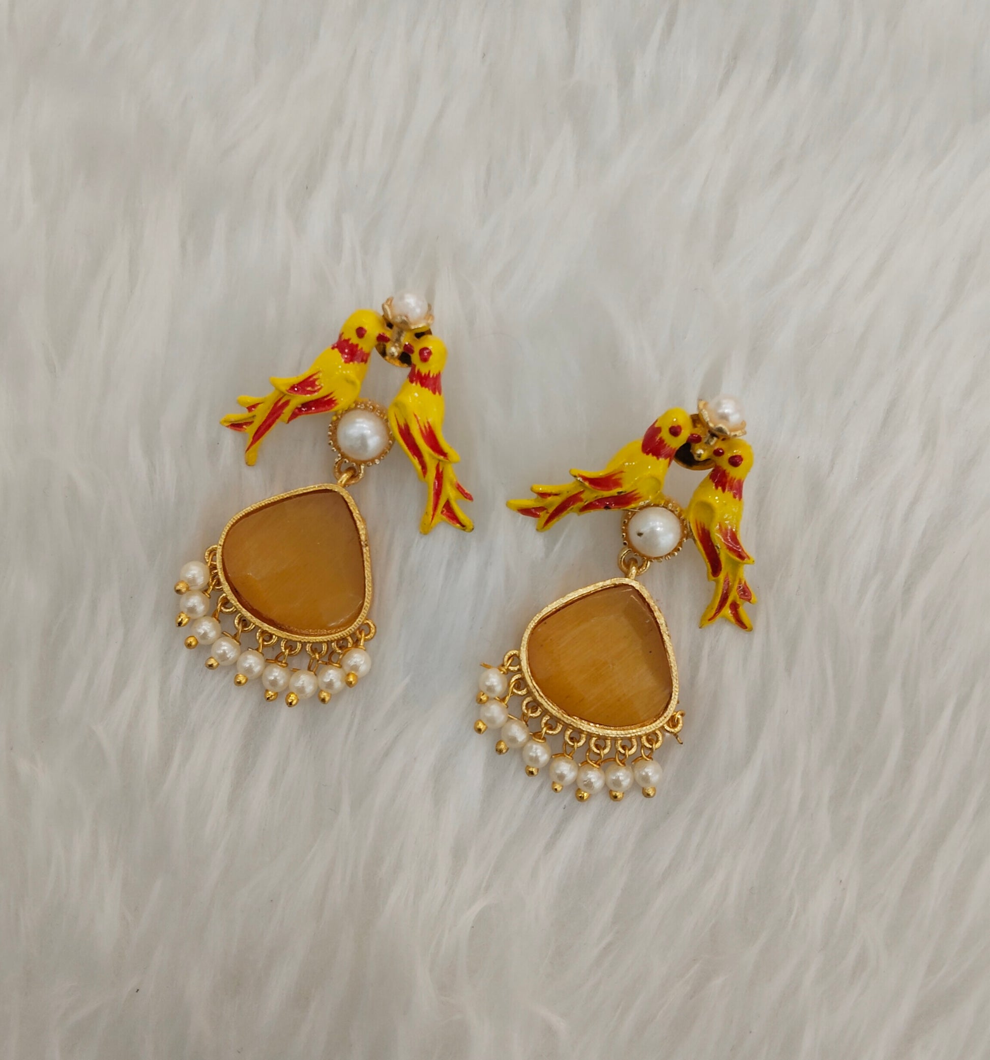 Yellow Mother Of Pearl Bollywood Brass Earrings