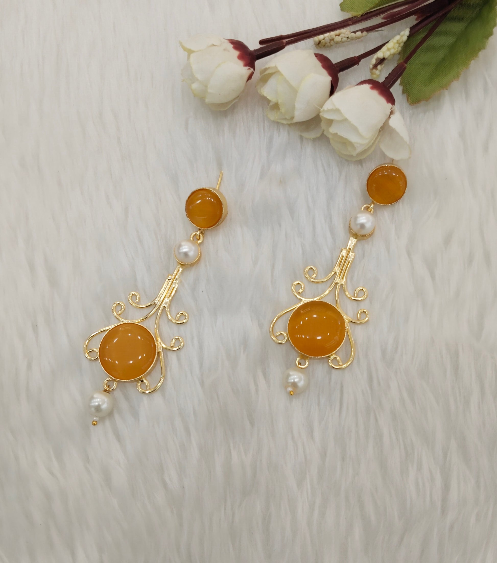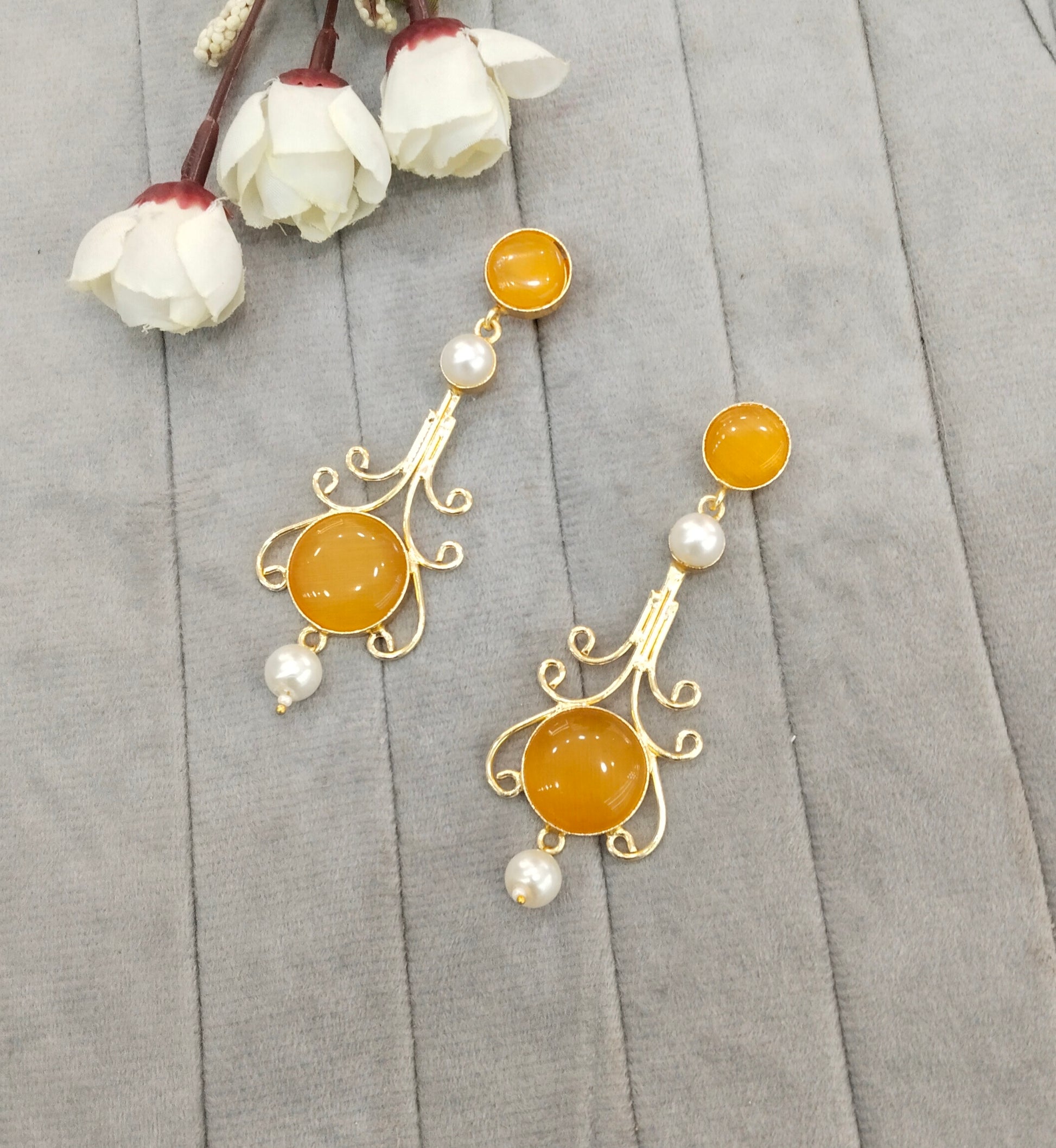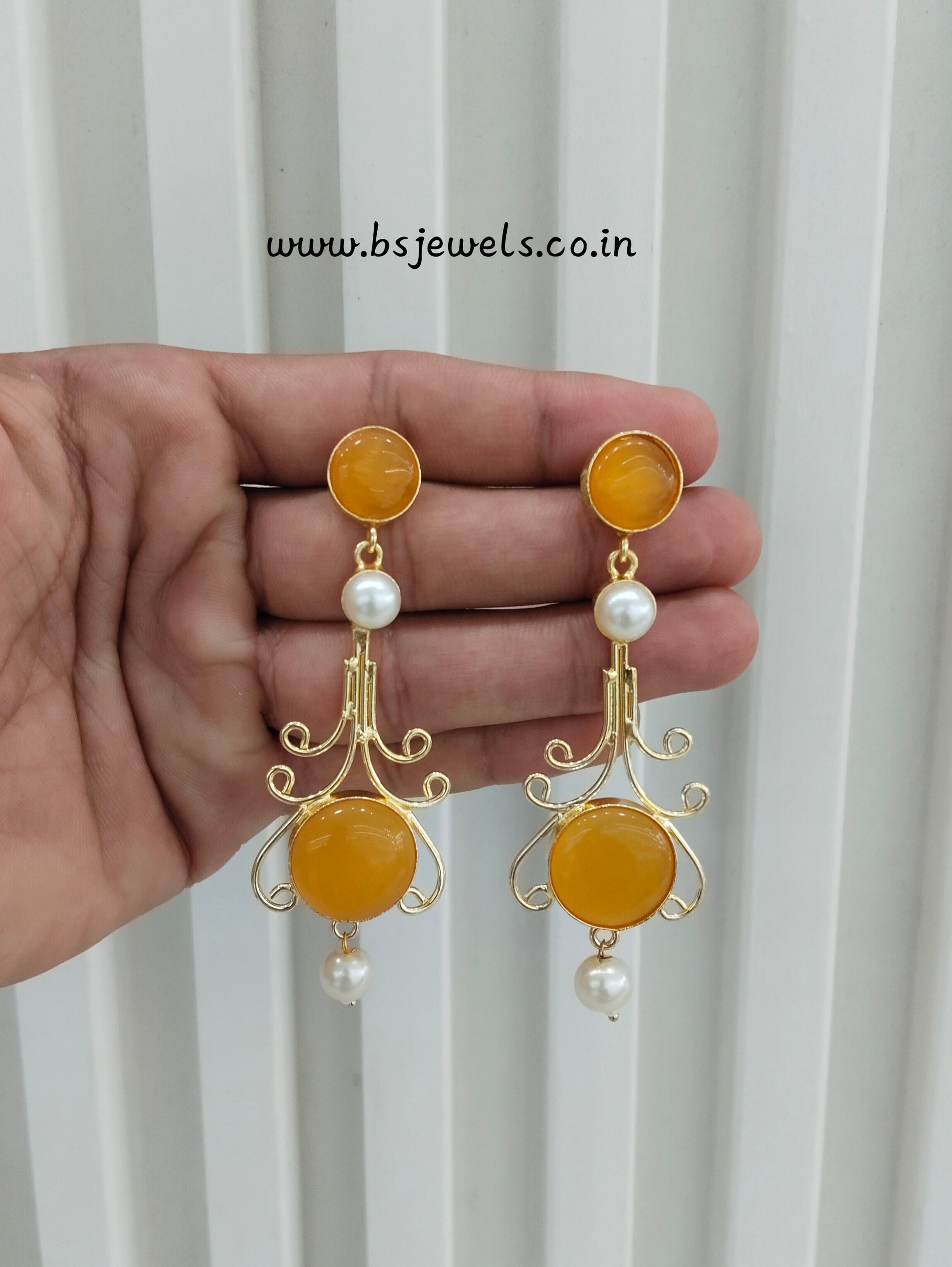 Yellow Mother Of Pearl Bollywood Jombi Earrings