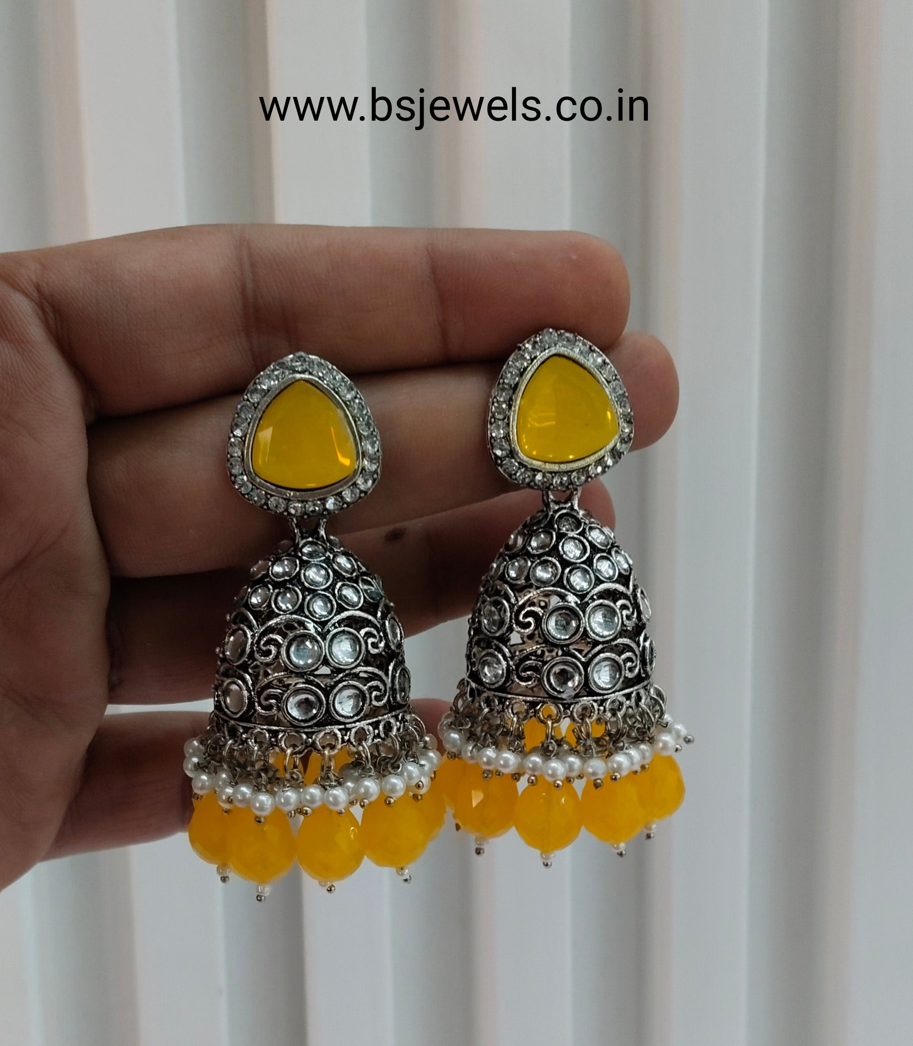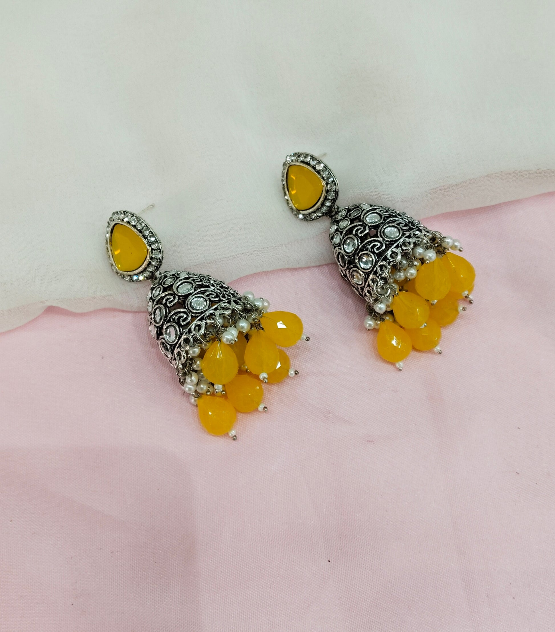 Yellow Oxidized Metal Helsinki Jhumka Earrings Set